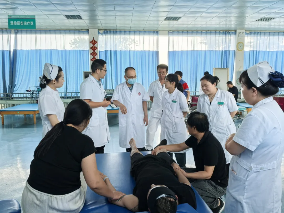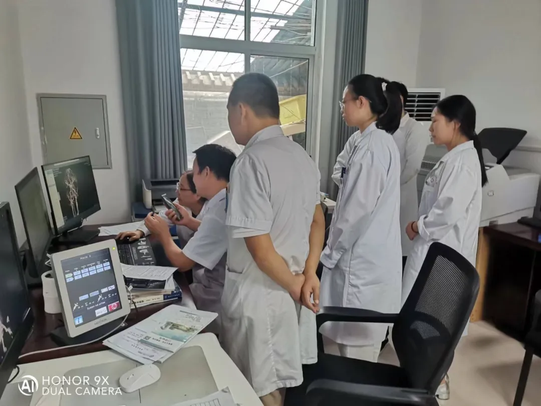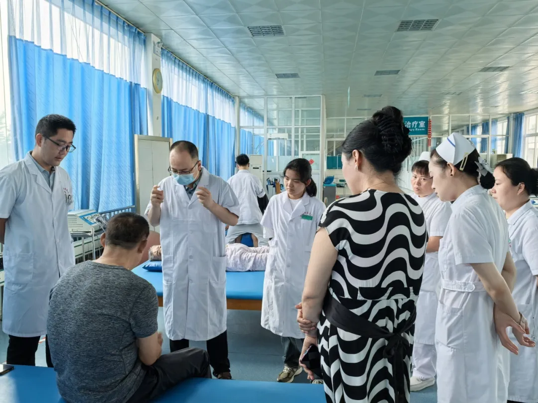 8月8日,南阳市中心医院神经内科主任齐献忠、康复医学科副主任胡科再度莅临我院,深入老年医学科、内科、康复医学科、康复治疗部等临床一线,通过示范问诊、规范查体、个体化方案调整,为我院医护人员呈现沉浸式临床教学。同时,齐献忠主任还前往CT室,结合影像学特点与临床病例,细致讲解诊断要点,进一步提升我院医生的综合诊疗能力。