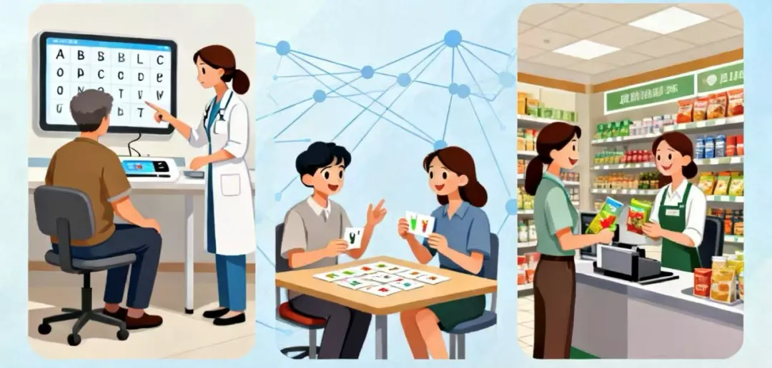 健康科普|脑卒中后失语:大脑的“语言迷雾”与突围之路发表时间:2025-12-16 11:35 一、什么是脑卒中后失语?脑卒中(俗称“中风”)可能损伤大脑语言中枢,导致患者突然无法正常说话、理解或表达,这种障碍被称为“失语症”。它并非智力问题,而是大脑“语言信号塔”暂时罢工。二、为什么脑卒中会引发失语?大脑是语言功能的“总指挥部”,且语言中枢多集中在左半球(无论左撇子还是右撇子,约95%的人语言中枢位于左脑)。而导致这一切的“罪魁祸首”,核心就是脑卒中:无论是脑部血管堵塞(缺血性脑卒中)还是破裂出血(出血性脑卒中),只要病变部位影响到大脑的语言中枢,就可能引发失语。除此之外,脑外伤、脑肿瘤、脑部感染等也可能损伤语言中枢,简单来说就是语言中枢“断电”或“受损”,才是失语的核心病因,而非“舌头不好用”或“嗓子出问题”。三、失语症的分类其实很有规律,核心围绕“说、听、读、写”四大语言功能的受损情况,就像不同岗位的“语言工人”出了问题: • 运动性失语:病变位置在优势大脑半球额下回后部的Broca区,表现为“心里明白,嘴上说不出”。患者能听懂别人的话,也知道自己想表达什么,但发音困难,要么只能蹦出单个字,要么完全说不出完整句子,就像“茶壶里煮饺子——有口道(倒)不出”。• 感觉性失语:为“耳朵能听,脑子不懂”,患者能听到声音,却无法理解话语的含义,比如你问“吃了吗”,他可能回答“今天天气好”,沟通完全不在一个频道,自己却意识不到。• 完全性失语:为“语言系统全面瘫痪”,这是最严重的类型,患者既不能说、也听不懂,无法阅读和书写,只能通过表情、手势等简单方式交流,就像突然掉进了“语言真空”。• 传导性失语:为“中间环节断了线”,患者能说、能听,也能读写,但无法重复别人的话,比如你说“苹果”,他可能说成“橘子”,或者卡壳说不出来,本质是大脑中“语言传递通路”受损。• 命名性失语:为“见物忘名”,患者其他语言功能都正常,但看到熟悉的物品(比如杯子、手表),就是叫不出名字,只能描述用途,比如“用来喝水的那个”。• 经皮质运动失语:为“能重复,难自发”,患者听懂和重复别人的话基本正常,但很难主动发起语言表达,比如问他“想吃什么”,他可能说不出,但你说“面条”,他能跟着重复“面条”,且发音清晰,核心是大脑“语言启动通路”受损。• 经皮质感觉失语:为“能重复,不理解”,患者能鹦鹉学舌般重复别人的话(比如你说“开门”,他就说“开门”),但完全不理解这句话的含义,也无法根据指令行动,本质是“听理解功能”与“语言重复功能”脱节。• 经皮质混合失语:为“能重复,难表达+听不懂”,这是经皮质运动失语和经皮质感觉失语的结合体,患者只能机械重复别人的话,既无法主动表达自己的想法,也不能理解他人话语的意思,沟通能力严重受损,但重复功能相对保留,是一种中间型失语。四、脑卒中后失语:康复治疗是关键,黄金期别错过 (一)失语症的康复核心是“激活受损脑区、重建语言通路”。常见言语康复方法如下:1.针对“说不出”(运动性失语):从“发音”到“造句”逐步突破基础语言训练(从“简单”到“复杂”)• 发音训练:针对运动性失语患者,从简单的元音(a、o、e)、辅音(b、p、m)开始,逐步过渡到字词发音,通过模仿、口型示范帮助患者恢复发音功能。练习口舌肌肉的灵活性(比如伸舌头、鼓腮帮),就像教小朋友学说话一样,循序渐进。• 进阶训练:先练习说单个词语(比如“吃饭”、“喝水”),再过渡到短句(“我要喝水”、“今天天气好”),最后尝试简单的对话。可以用图片、实物辅助,强化视觉与语言的关联。2.针对“听不懂”(感觉性失语):强化“听-理解”的联动• 听觉刺激:给患者听熟悉的声音(比如家人的声音、常用的歌曲),让他判断“这是谁的声音”、“这是什么歌”,锻炼听觉识别能力。• 指令训练:从简单的指令(“坐下”、“拿起杯子”)开始,让患者根据指令做动作,逐步增加指令难度(“先拿起杯子,再放到桌子上”),帮助患者建立语言与事物的关联,逐步提升理解能力。3.针对“读不懂、写不出”(阅读/书写障碍):从“识别”到“表达”双向训练• 阅读训练:先看简单的文字、拼音卡片,让患者认读,再过渡到简短的句子、儿歌,鼓励大声读出来,强化视觉与语言的对应。• 书写训练:从握笔、写自己的名字开始,再练习写常用词语、短句,也可以让患者“听写”(家人说,他写),或者用手机、平板的手写输入辅助,降低书写难度。(二)功能性沟通训练(聚焦“实用场景”)康复的最终目标是让患者能回归生活,因此需结合日常沟通场景训练:1.练习表达需求(如“我要喝水”、“我不舒服”)、回答简单问题(“你叫什么名字”、“今天吃什么”);2.家庭辅助:让康复融入日常生活• 多沟通,少代替:和患者交流时,语速要慢、发音要清晰,用简单直白的句子,不要因为他说不出就替他“抢答”,给足他表达的时间,哪怕他只能蹦出几个字,也要及时鼓励(“说得很好,再试试完整说一遍”)。• 利用生活场景:吃饭时说“这是米饭,香喷喷的”,散步时说“这是大树,绿色的”,把语言训练融入日常活动,让患者在真实场景中巩固记忆。• 借助工具辅助:用图片卡片、文字卡片、语音播放器等工具,也可以下载专门的失语康复APP,让训练更有趣味性,避