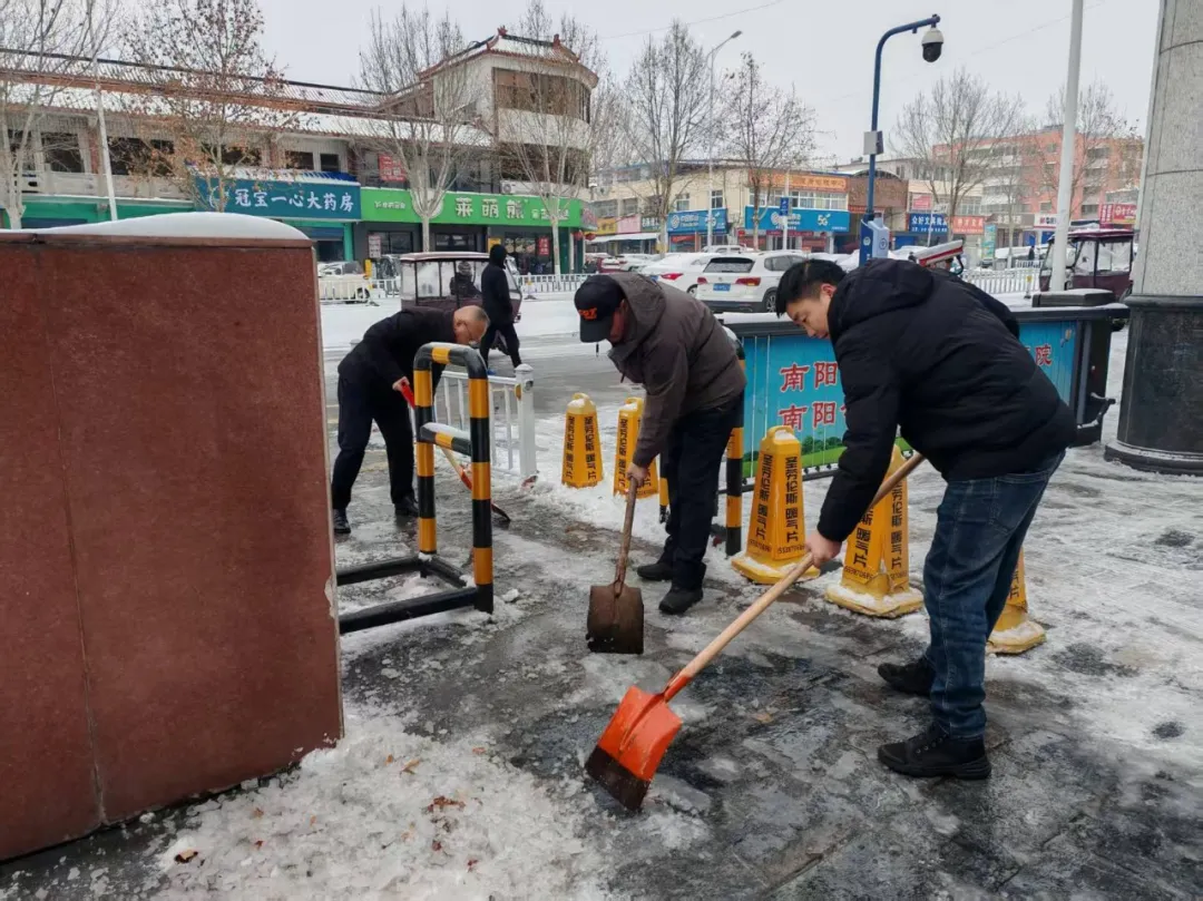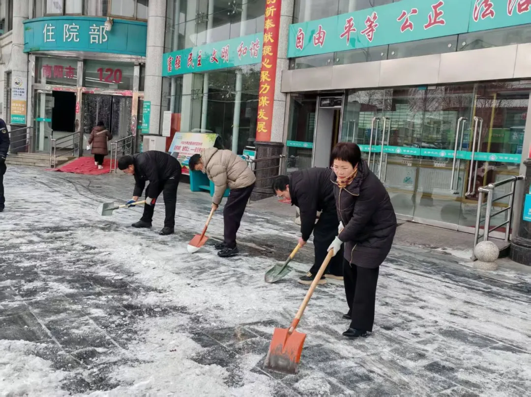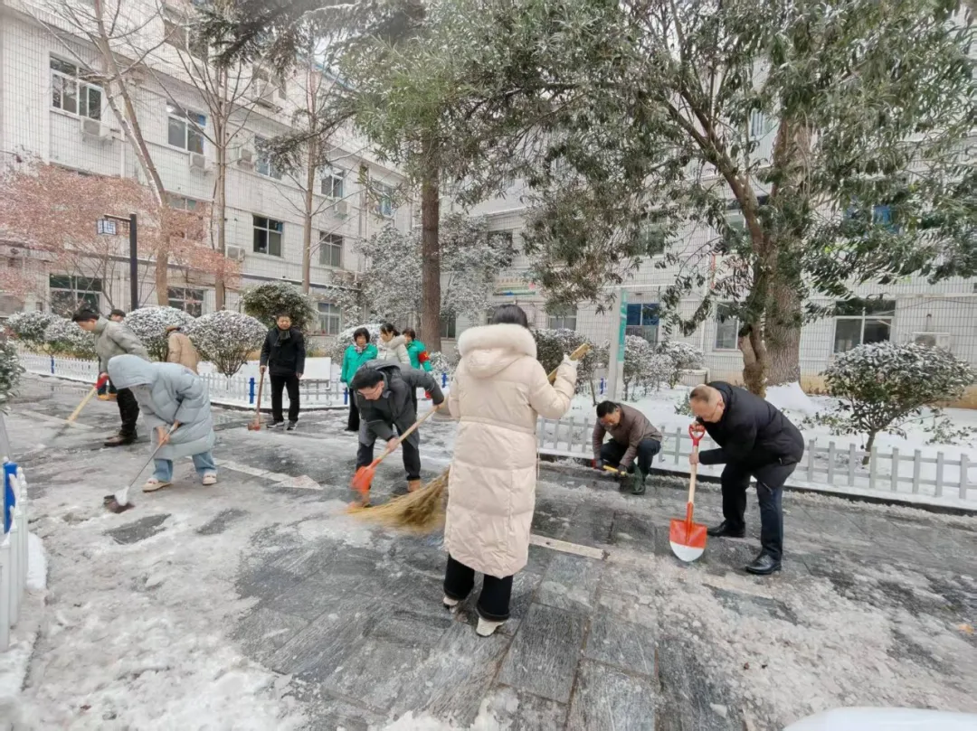 安全生产|以雪为令齐上阵 平安“医”路保畅通——南阳市康复医院开展扫雪除冰活动发表时间:2026-01-20 16:29 瑞雪兆丰年,清雪保畅通。积雪给道路交通和群众就医带来安全隐患。为有效应对极端天气,畅通就医通道,南阳市康复医院党总支以雪为令、闻令而动,迅速组织党员干部职工开展扫雪行动,筑牢安全防线。医院党总支书记仵志强,院长刘建率先垂范,带领机关职能部门的同志们,手持除雪铲、铁锹、扫把,对医院主干道、门诊楼前、急诊通道等重点区域开辟“攻坚战场”。