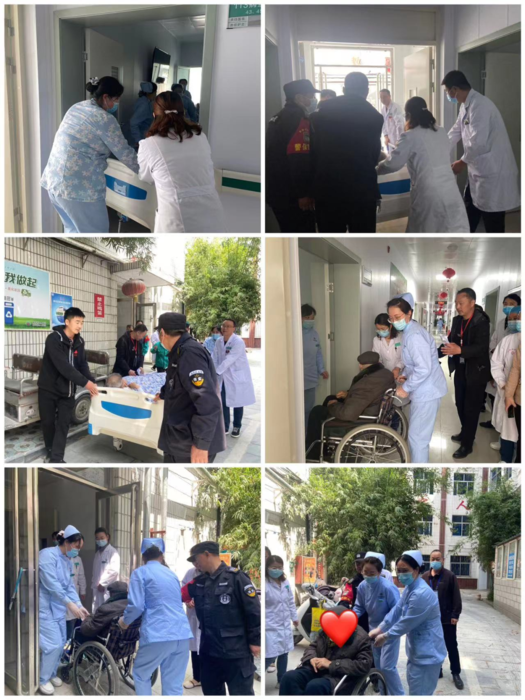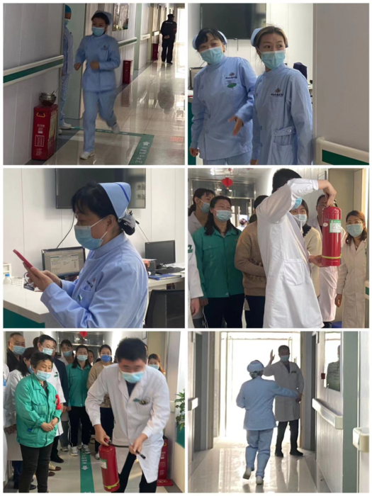 实操结束后,陆主任组织在住院部老年科一病区进行应急演练。本次演练由院党总支书记仵志强总指挥,工会主席张恒副总指挥,后勤科、保安人员、科室值班人员协调分工,组成疏散引导组、灭火行动组,设备科为设备保障及通讯联络组,急诊科为安全救护组。 此次演练模拟老年康复一病区内发现明火,护理人员呼叫起火、科室医生发现火情立即启动应急预案,科室医护人员组织患者疏散,将情况汇报给院总值班。院内疏散引导组、灭火行动组迅速到位,各司其职。最终,在大家的共同努力下,“大火”被成功扑灭,楼内人员均已有序、安全撤离至指定地点。