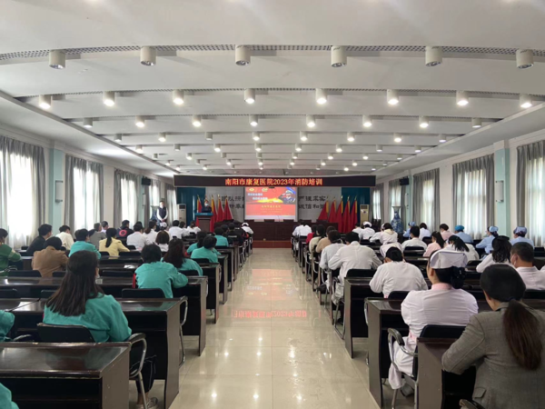 工作动态 | 南阳市康复医院组织开展消防安全培训及应急演练发表时间:2023-05-05 10:51 为进一步落实消防安全,筑牢安全生产稳固防线,增强全院职工在紧急情况下的应变和自我防护能力,检验我院消防设施的性能,2023年4月27日上午,南阳市康复医院组织开展了消防安全培训及应急演练。